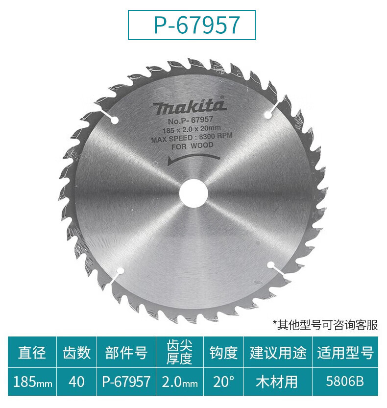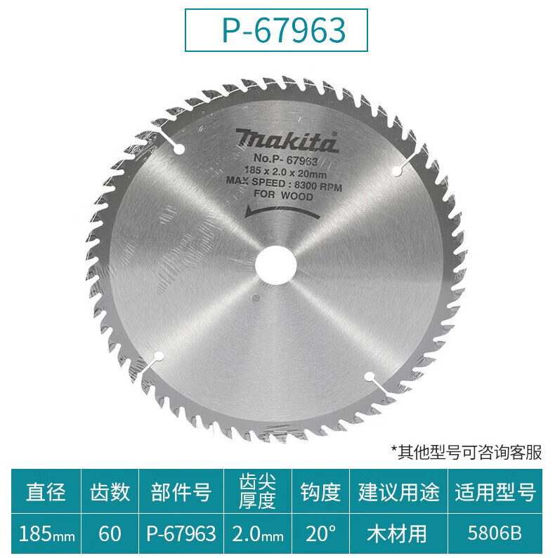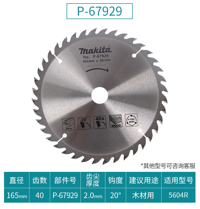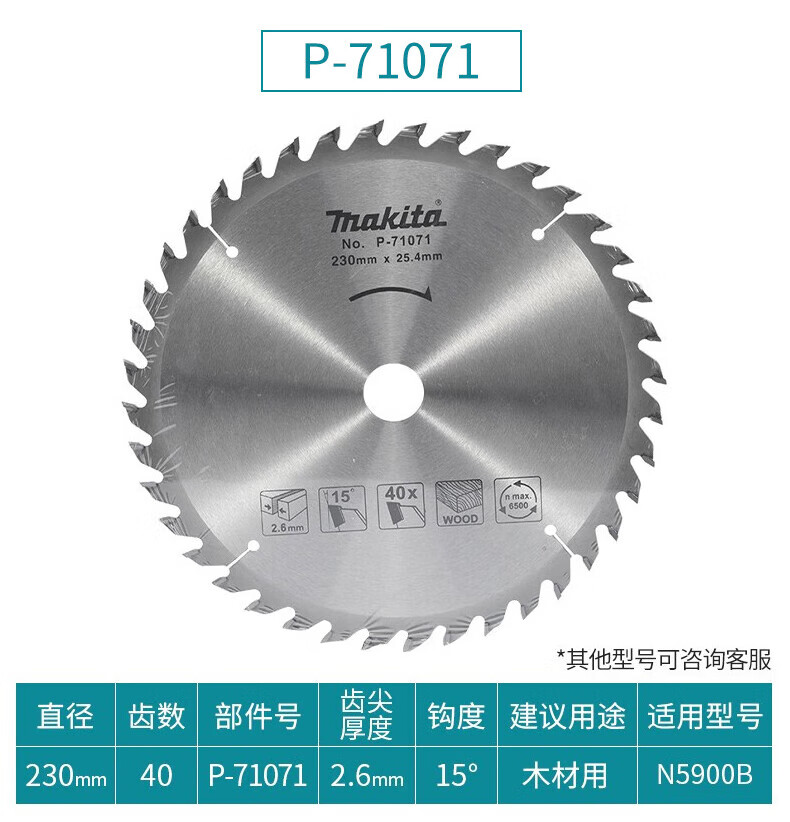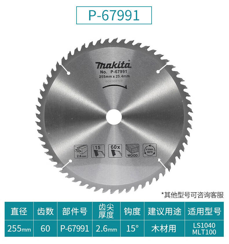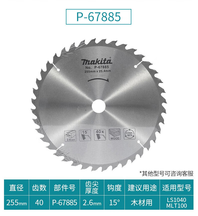 牧田(makita) P-67885 电圆锯台锯切割片硬质合金7/9/10寸锯片 255mmX25.4X40T木材锯片-